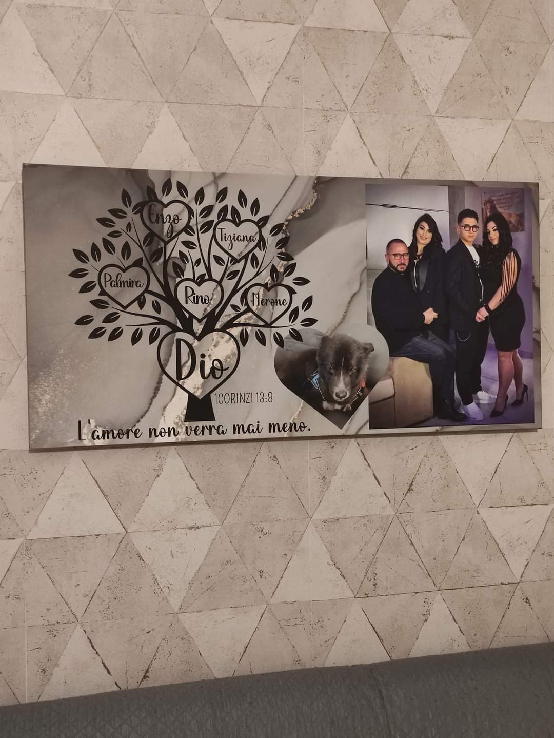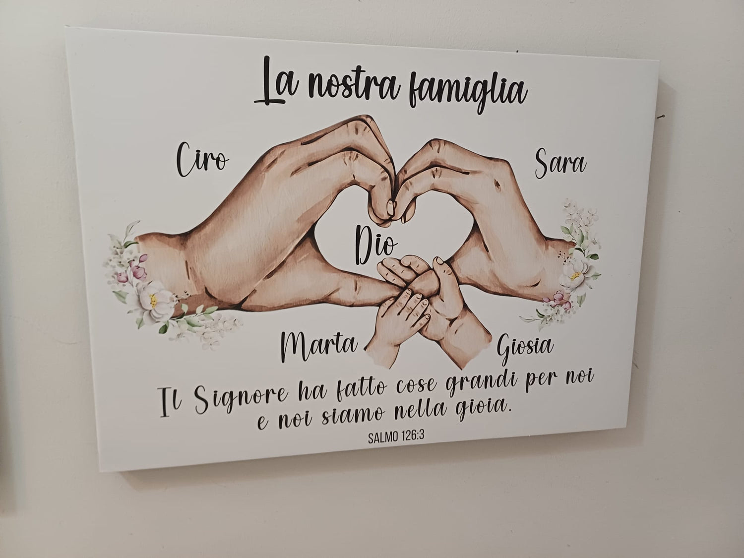 E' possibile personalizzare la tela con tutti i componenti della famiglia e i loro nomi, inoltre è possibile personalizzare il quadro sia nel colore di sfondo, che nel verso, contattandoci su WhatsAapp al 3881139134.