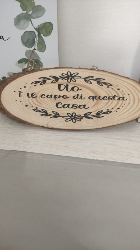 Targhetta legno "Dio è il capo di questa casa" misura piccola e grande
