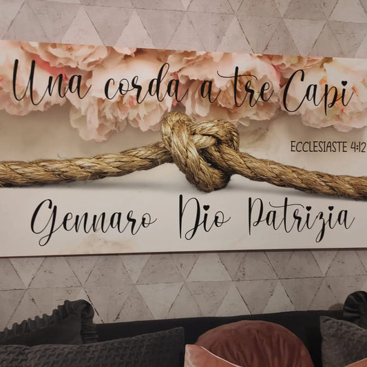 quadro in tela "UNA CORDA A TRE CAPI" PERSONALIZZABILE NOMI-FONT-SFONDO
