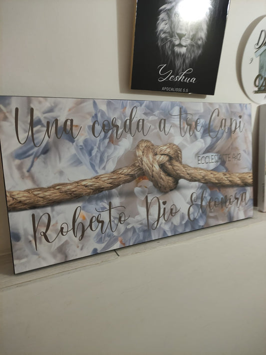 quadro in tela "UNA CORDA A TRE CAPI bibbia" PERSONALIZZABILE NOMI-FONT-SFONDO
